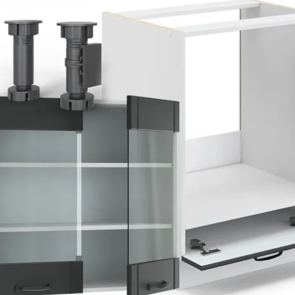 Fame-Line köksskåp erbjuder förstklassig kvalitet med snygga handtag, bekväma mjukstängande gångjärn och fullförlängningsrutschbanor i metall till rimliga priser.
