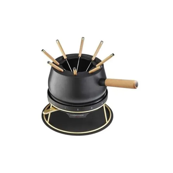Fondue Arv – Med 8 gafflar och 1 förvaringspåse. För alla typer av värmekällor: Grytan är kompatibel med induktionshällar, elektriska spisar och gas. Alla fonduer: Justerbar termostat för att anpassa temperaturen till alla typer av fondue. Lätt att rengöra: Gryta med non-stick beläggning. Tillbehör: Fonduegaflar och ett ställ för gafflar ingår. Olika recept: Gör alla typer av fondue, från choklad till savoyarde och bourguignonne. Justerbar temperatur: Ställ in temperaturen för att laga eller helt enkelt hålla din rätt varm på bordet. Lätt att transportera: Använd det massiva trähandtaget för att flytta dina rätter från spisen till bordet. Kontrollpanel: Den innehåller temperaturratten och en strömknapp.