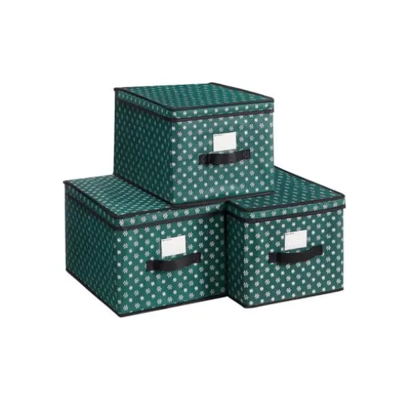 Demeubelimporteur julgranskulor, set med 3, vikbara lådor med etiketthållare och etiketter, för jul, tyglaskar, garderob, 30 x 40 x 25 cm, med snöflingor, grön – Färg: grön Material: kartong, non-woven tyg Mått per låda: 30 x 40 x 25 cm (L x B x H) Totalvikt för de 3 lådorna: 2,3 kg Maximal statisk belastning per låda: 5 kg