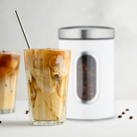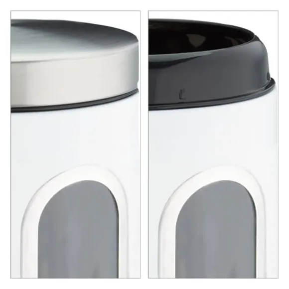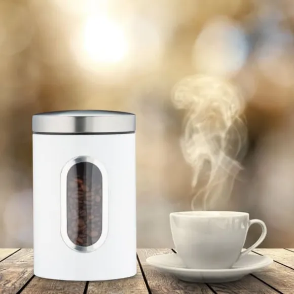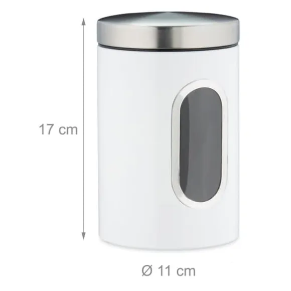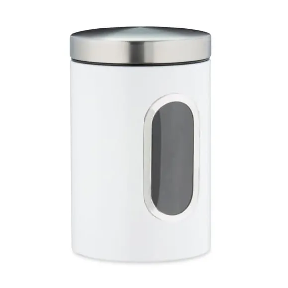 Håll ditt kök organiserat och maten fräsch med denna praktiska förvaringsburk med stort fönster för enkel överblick av innehållet. Perfekt för förvaring av olika torra livsmedel, denna metallburk har ett tättslutande lock som bevarar fräschhet och aromer. Dess platsbesparande design gör den idealisk för alla köksbänkar eller skafferier.