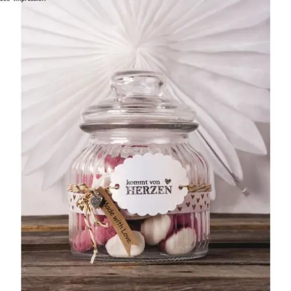 Innehållet är läckert, förpackningen en riktig fröjd för ögonen! Ge bort hemgjorda artiklar i den fina glasburken, dekorerad med ett band och en etikett!