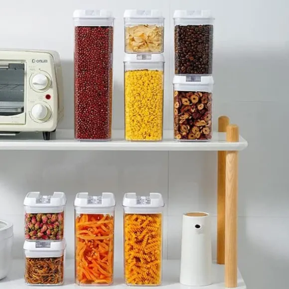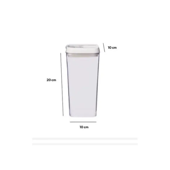 Förvaringsburkar 1,2 liter i polystyren med hermetiskt lock från Secret de Gourmet. Nya eller återanvända, burkarna i polystyren är populära. De är robusta, praktiska, och möjliggör förvaring men också bevarande av alla typer av produkter eller hemgjorda förberedelser. De som handlar i lösvikt älskar dem. Tekniska specifikationer: Produktdimensioner: L. 10 x B. 10 x H. 15,4 cm Stängningssystem: