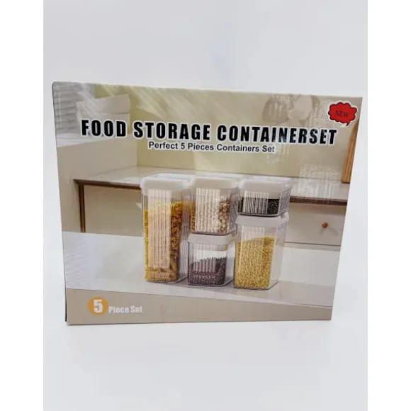 ✅ Set med 5 köksburkar med lufttät tryckknappslås
