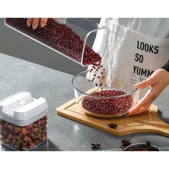 Burkarna är tillverkade av högkvalitativt transparent plast, vilket gör att du enkelt kan kontrollera innehållet utan att behöva öppna dem. De moderna locken passar perfekt in i alla köksinredningar. De släta ytorna möjliggör snabb rengöring, och det repfria materialet garanterar långvarig användning.