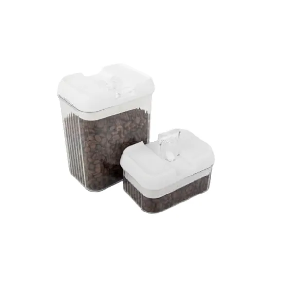 Varje burk har ett lock med en vakuumknappmekanism. När den trycks in avlägsnas luften från insidan, vilket säkerställer ett tätt och säkert förslutning. För att öppna burken, lyft bara på spännet – det praktiska enhandssystemet gör burkarna snabba och lätta att använda.