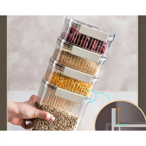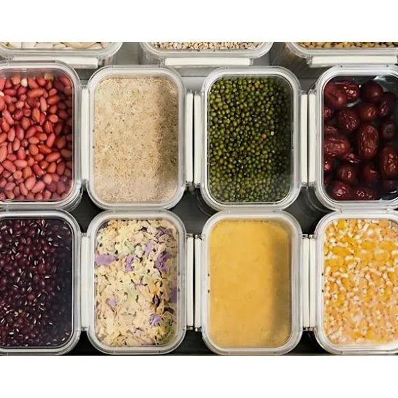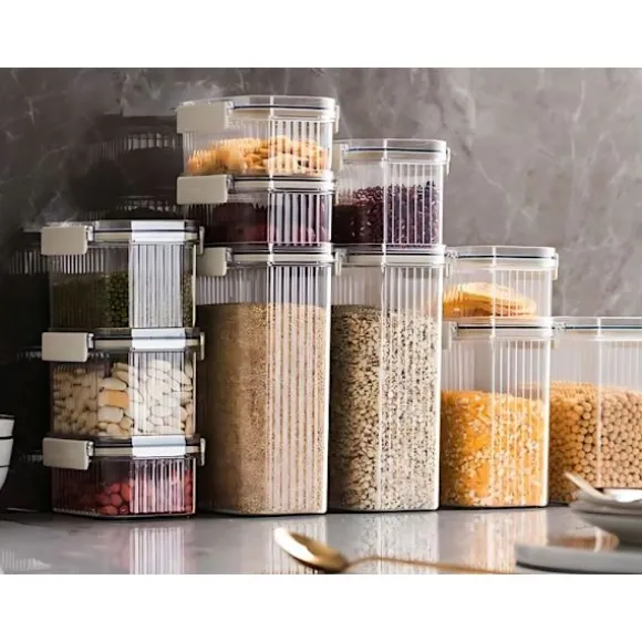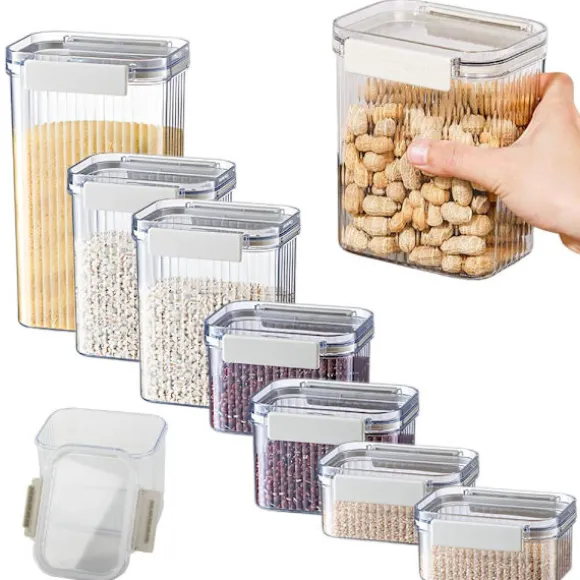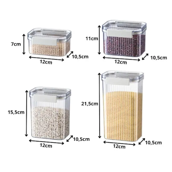 Varje burk är utrustad med ett robust lock med silikontätning som skyddar produkterna från fukt, insekter och förlust av färskhet. Detta håller maten färsk längre och ditt kök fritt från oreda. Burkarna är tillverkade av högkvalitativ plast som är sprickbeständig och lätt att rengöra.