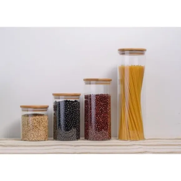 Detta set med 4 glasburkar i borosilikat är idealiskt för att bevara dina livsmedel. Med storlekar från 10x30cm till 10x10cm erbjuder de en kapacitet från 500ml till 1800ml. Varje burk är utrustad med ett lufttätt lock för optimal förvaring. Praktiska och estetiska, de passar perfekt in i ditt kök.