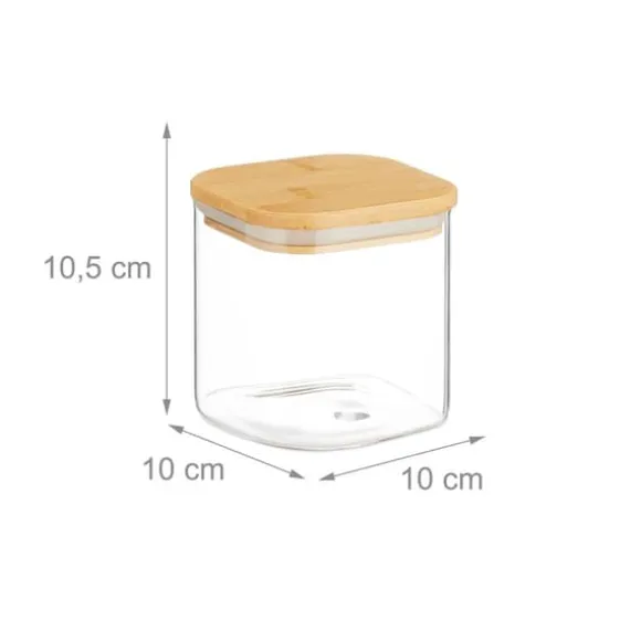 Detta set med tre förvaringsburkar erbjuder en stilren och praktisk lösning för att organisera olika livsmedel samtidigt som de hålls fräscha. De lufttäta bambulocken med silikonringar säkerställer optimal bevaring, och den klara glasdesignen gör det enkelt att identifiera innehållet. Dessa burkar är perfekta för att spara plats i köket och ge din förvaring en elegant touch.