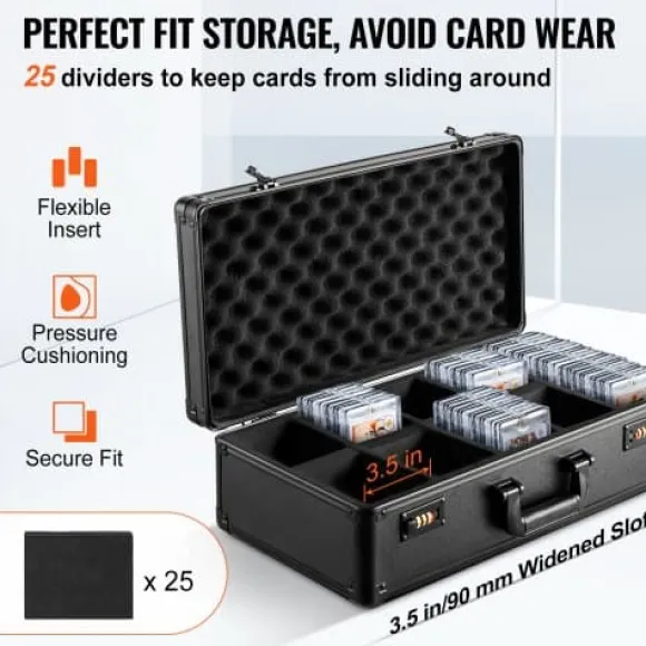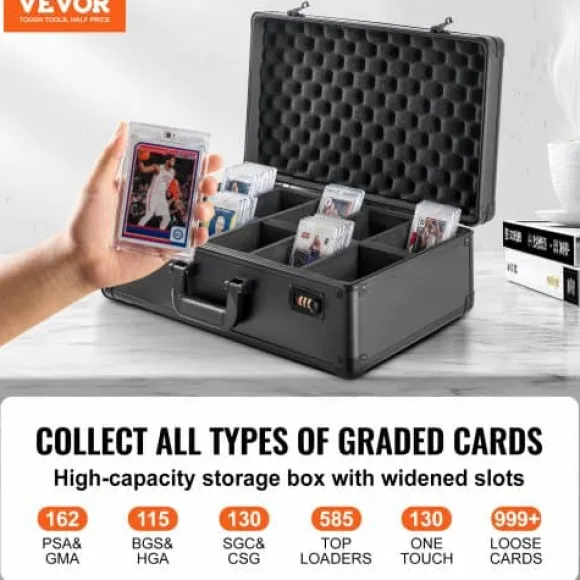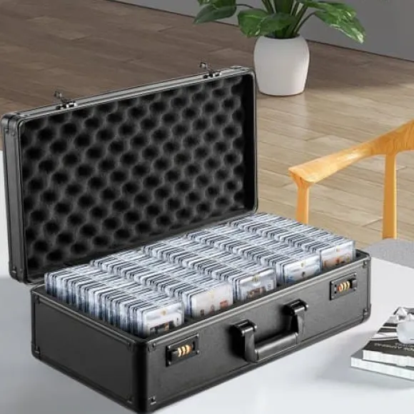 Håll din värdefulla kortsamling organiserad och säker med denna högkapacitets förvaringslåda för graderade kort, designad för samlare som behöver pålitligt skydd och smidig transport. Väskan har ett slitstarkt skal, flexibla skumavdelare och ett kombinationslås som skyddar dina kort mot skador och obehörig åtkomst. Den lätta designen och det övre handtaget gör den enkel att bära till utställningar och evenemang.