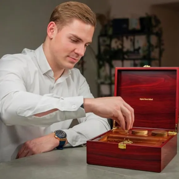 Sammanfattning: Open Your Mind är inte bara en låda – det är ett sofistikerat livsstilselement. Tack vare sitt noggranna hantverk, väl genomtänkta konstruktion och eleganta design blir den ett oumbärligt tillskott till alla utrymmen. Perfekt som present eller en personlig detalj i ditt hem. Beställ och ge vardagliga ögonblick en unik karaktär.