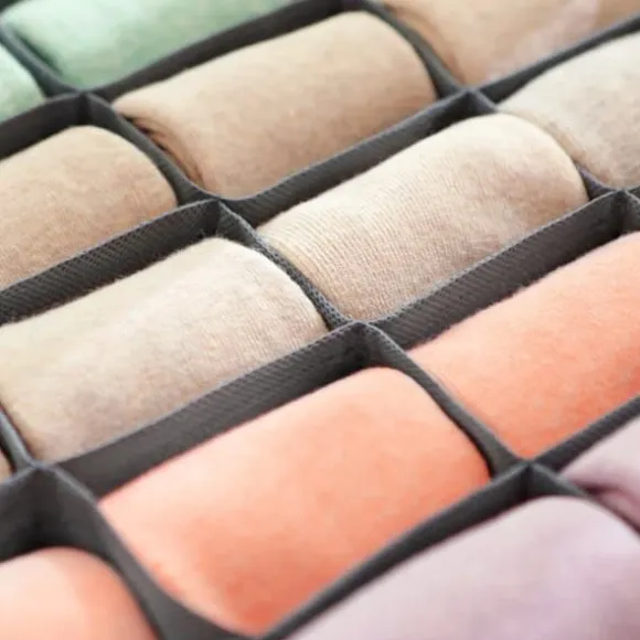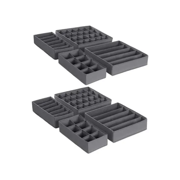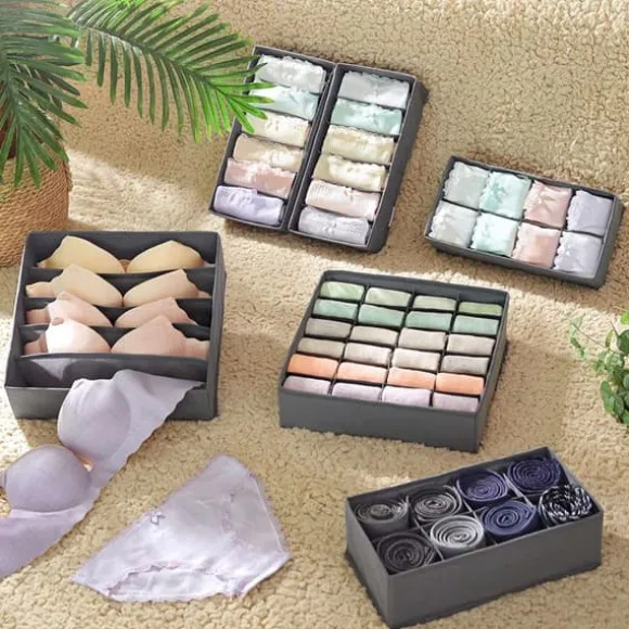 Dessa tygförvaringslådor är en idealisk lösning för att organisera underkläder, strumpor, slipsar och andra småsaker, vilket hjälper till att hålla lådor och garderober prydliga och lättillgängliga. Setet är mångsidigt för olika användningsområden, inklusive förvaring av babykläder och reseorganisation, och har flera fack för effektiv sortering.