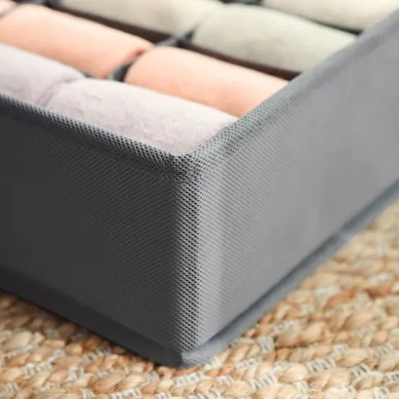 - Låda med 24 fack för strumpor eller andra accessoarer: 32 x 32 x 10 cm (L x B x H)