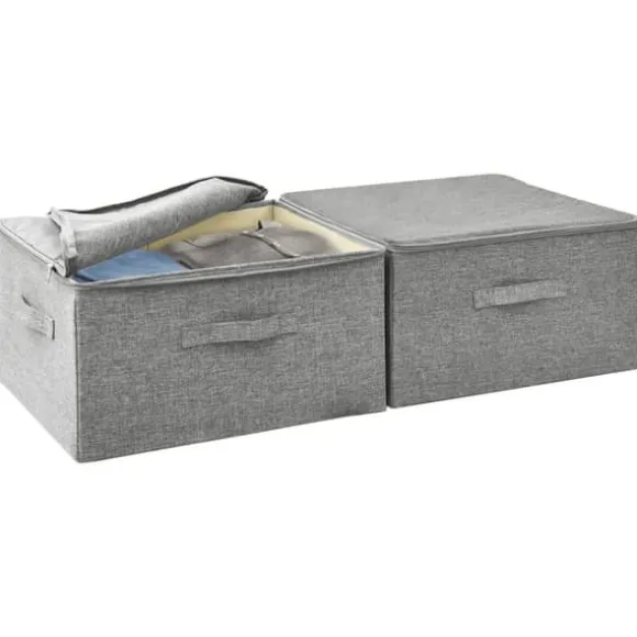 Förvaringslåda 2 st tyg 43x34x23 cm grå Dessa hopfällbara förvaringslådor är perfekta för att hålla ordning i ditt hem. Förvaringslåda 2 st tyg 43x34x23 cm grå (1x) Din beställning kommer att levereras i ett paket. Så snart din beställning har packats får du omedelbart din leveransinformation från oss. Vi hoppas att du blir nöjd med ditt köp.