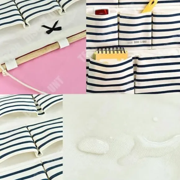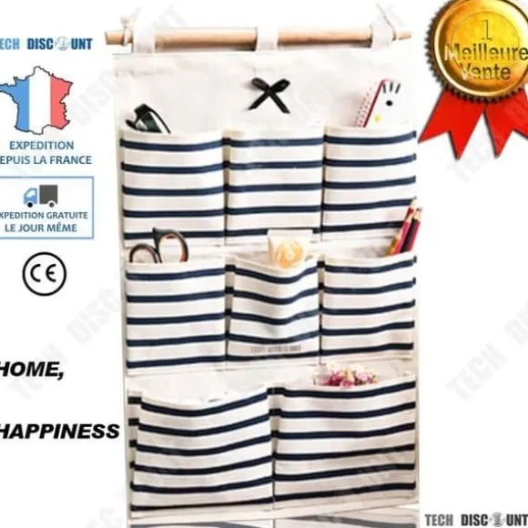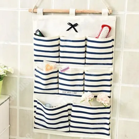 Denna hängande förvaringspåse i bomull och lin har 8 fickor för att optimera utrymmet. Med sina mått på 49 cm x 34,5 cm hänger den enkelt bakom en dörr eller på en vägg, perfekt för badrummet, köket eller sovrummet.