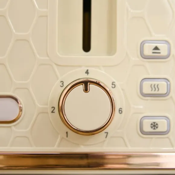 Detta frukostset kombinerar en snabbkokande vattenkokare och en fyrskivstoaster, vilket gör det enkelt att förbereda varma drycker och perfekt rostat bröd för sammankomster eller dagligt bruk. Brödrosten erbjuder flera bryningsnivåer, upptinings- och återuppvärmningsfunktioner, medan vattenkokaren har användarvänliga säkerhetsfunktioner och ett tydligt vattennivåfönster för bekvämlighet. Dess eleganta bikakedesign ger ett stilrent inslag i alla kök.