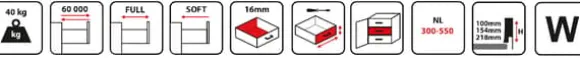 BOX2 är en låda tillverkad av högkvalitativa material, tack vare vilken den arbetar tyst och smidigt. Dess höga lastkapacitet (upp till 40 kg) möjliggör stressfri förvaring av alla typer av föremål. Lådan är mycket felfri, med 60 000 öppnings- och stängningscykler, vilket innebär att den kan användas utan fel i upp till 11 år.Lådan har full utdragbarhet och mjukstängningsfunktion. Den finns i tre olika höjder och flera längder.