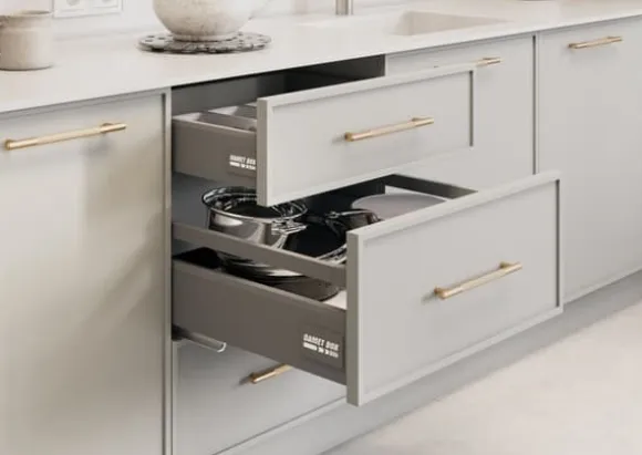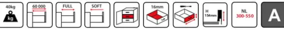 BOX2 är en låda tillverkad av högkvalitativa material, tack vare vilken den arbetar tyst och smidigt. Dess höga lastkapacitet (upp till 40 kg) möjliggör stressfri förvaring av alla typer av föremål. Lådan är mycket felfri, med 60 000 öppnings- och stängningscykler, vilket innebär att den kan användas utan fel i upp till 11 år.Lådan har full utdragbarhet och mjukstängningsfunktion. Den finns i tre olika höjder och flera längder.