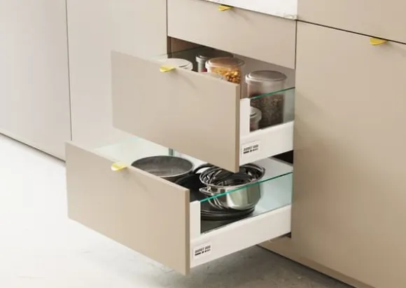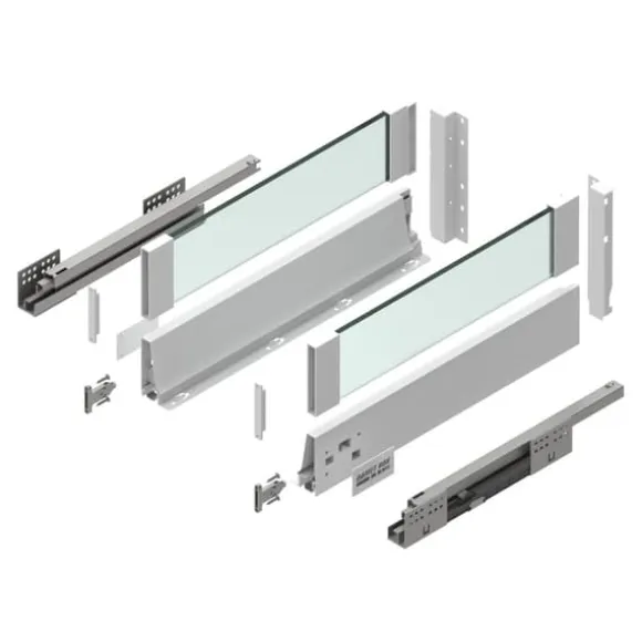 BOX2 är en låda tillverkad av högkvalitativa material, tack vare vilken den arbetar tyst och smidigt. Dess **höga lastkapacitet (upp till 40 kg)** möjliggör stressfri förvaring av alla möjliga saker. **Glaspanelerna** som används i lådan ger köket elegans och modernitet. Lådan är **mycket felfri**, vilket motsvarar 60 000 öppnings- och stängningscykler, vilket innebär **möjligheten till felfri användning i upp till 11 år.** Lådan har **full utdragsfunktion** och **tyst stängning**. Den finns i flera längder.