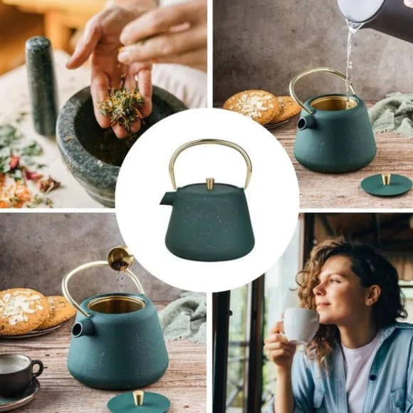 Gjutjärn tekanna, infuserFör te och örter, kapacitet 1000ml, KINGHOFF. Tillverkad av gjutjärn, emaljerad insida. Det gör att du kan njuta av doften av lösbladste och, när den placeras på ett bord, kommer den att fungera som en elegant dekoration. Detta företags produkter är synonyma med kvalitet och funktionalitet, riktade till älskare av moderna och vackra föremål. En traditionell metod för att brygga te i en attraktiv, orientalisk design. Infusionsenheten består av en kanna med ett bekvämt vikbart handtag och hällpip, samt ett stålfilter.