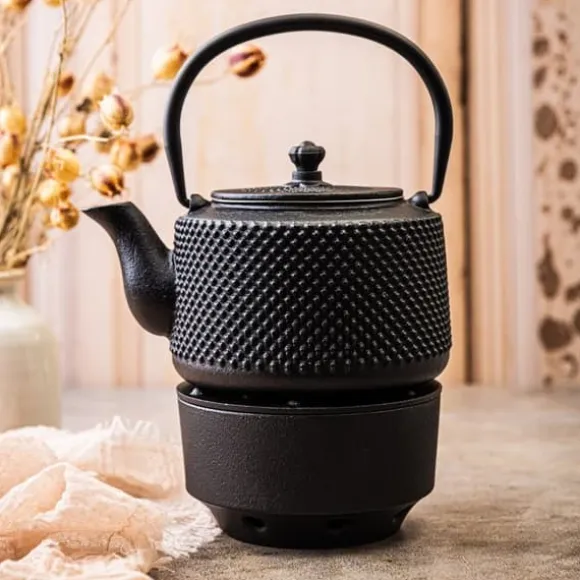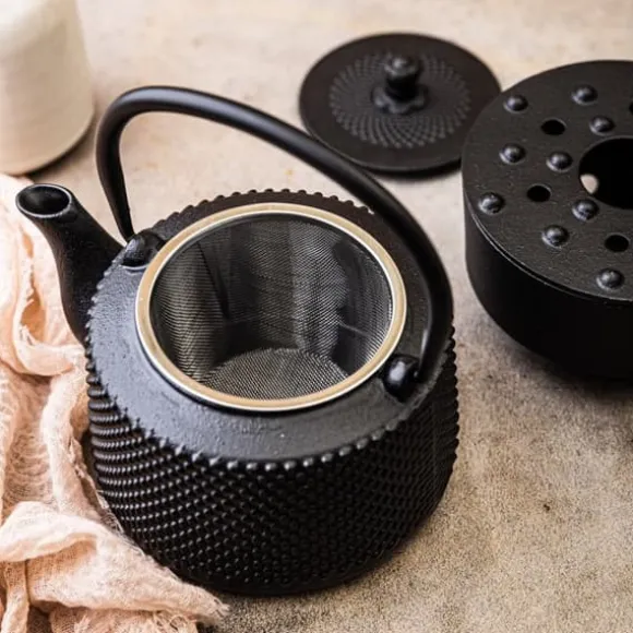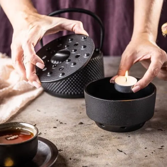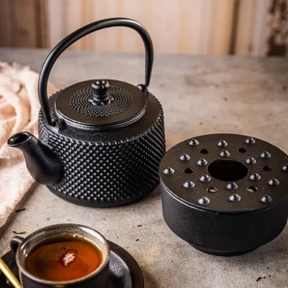 Gjutjärnstekanna med varmare, infusorför te och örter, 800ml kapacitet KINGHOFF. Tillverkad av gjutjärn, emaljerad insida. Det gör att du kan njuta av doften av lösbladste och, när den placeras på ett bord, kommer den att fungera som en elegant dekoration. Detta företags produkter är synonyma med kvalitet och funktionalitet, riktade till älskare av moderna och vackra föremål. En traditionell metod att brygga te i en attraktiv orientalisk design. Infusionsenheten består av en kanna med ett bekvämt vikbart handtag, ett stålfilter och en gjutjärnsvärmare.