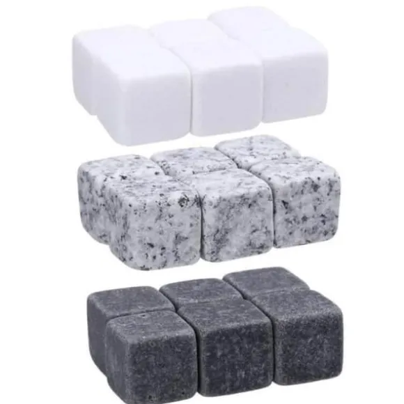 GL05293-Återanvändbara whiskystenar med påse. 6 stycken. isbitar. kylare. bröllopspresent. Christmas.BAC A ICE CON – SAC A ICE CON.Förpackningsinnehåll:2 set:Grå