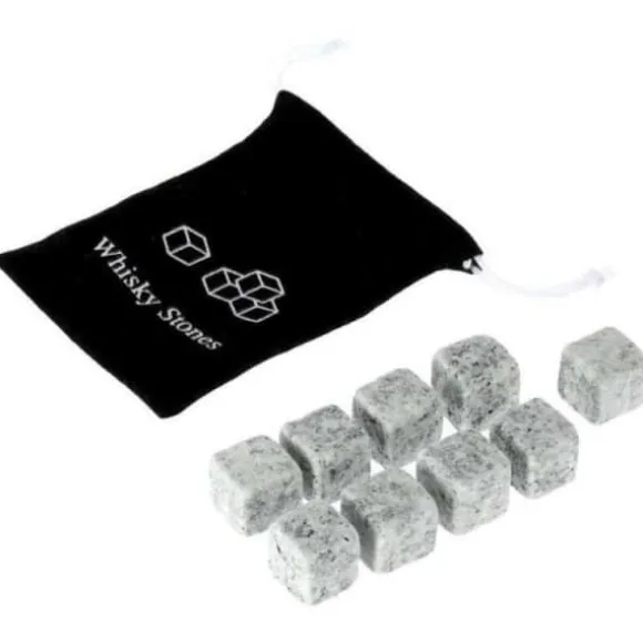 GL11459-Set med 9 bitar av granit whiskysten. Glaciärblockkuber. Naturlig bulkkylare för barredskap. hushållsredskap för att dricka vin.BAC A GLACON – SAC A GLACON.Paketinnehåll:Märkning