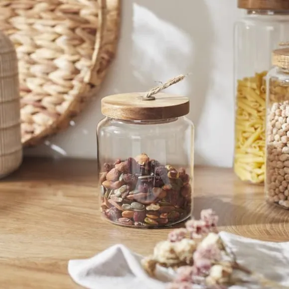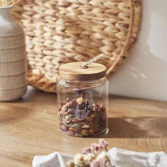 Denna eleganta 13 cm höga glasburk med akacialock ärden perfekta lösningen för dig som värdesätter stil och funktionalitet i köket.Tillverkad av högkvalitativt borosilikatglas,den kombinerar estetik med praktisk, perfekt komplement till modern inredning.