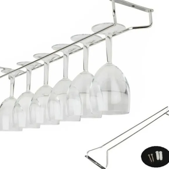 Denna 55 cm glashållare i rostfritt stål är perfekt för hem, barer och restauranger. Det låter dig visa dina vinglas elegant samtidigt som du minimerar risken för att de går sönder. Perfekt för vinälskare, den kombinerar kvalitet och funktionalitet.