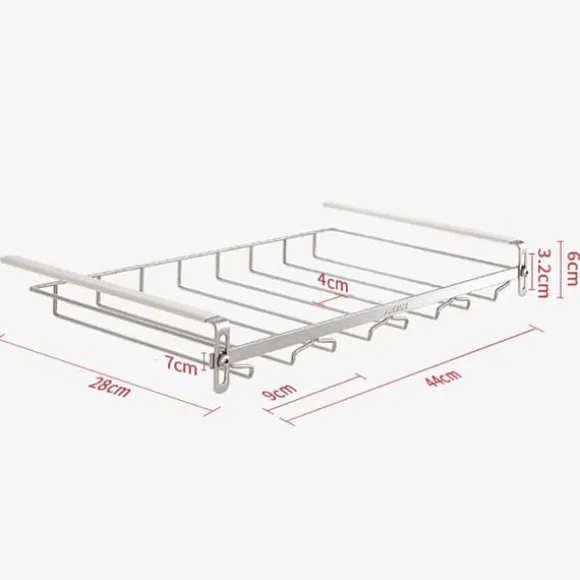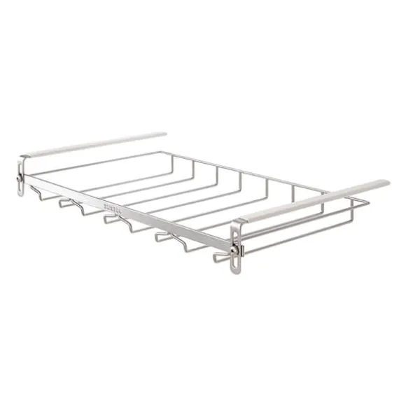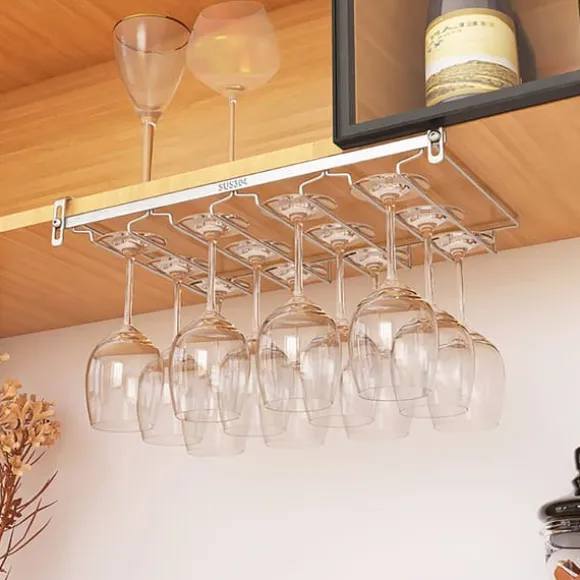 Denna praktiska glashängare ger en elegant och platsbesparande lösning för att förvara vinglas och andra glas med fot. Genom att hänga upp glasen under en hylla frigörs bänkutrymme och skåputrymme, samtidigt som glasen hålls lättillgängliga och skyddade.