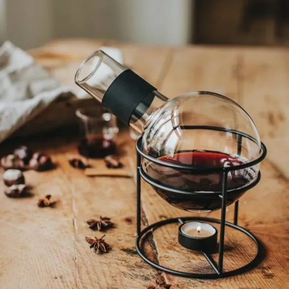 Elegant glöggkanna i glas med svart metallställ – en stämningsfull detalj till vinterdukningen. Kannan har plats för värmeljus undertill som håller glöggen varm och serveringsklar hela kvällen. Perfekt till adventsfikat, julbordet eller mysiga vinterkvällar. Rymmer cirka 1,3 liter.