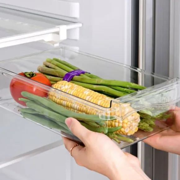 Med denna låda kan du fixa extra förvaringsutrymme i din kyl genom att hänga upp den i hyllorna.