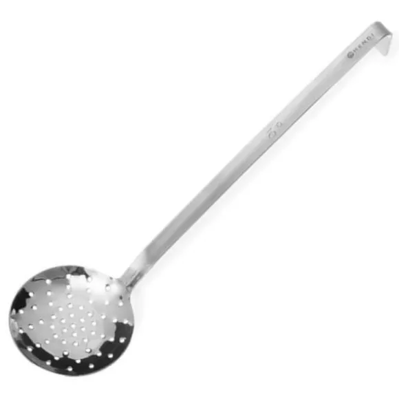 Den hålskeden från Profi Line by HENDI är idealisk för att sila mat från vatten eller fett. Den är tillverkad av ett stycke 18/10 rostfritt stål, som uppfyller HACCP-kraven, och är dessutom fri från svetsar och böjar, vilket garanterar hög kvalitet på utförande. Enkelhandtaget är avslutat på ett sätt som gör att du kan hänga tillbehöret på ett lättillgängligt ställe så att du alltid har det till hands. Produkten tål maskindisk. Det kommer att fungera utmärkt i HoReCa-branschen såväl som i hemköket.