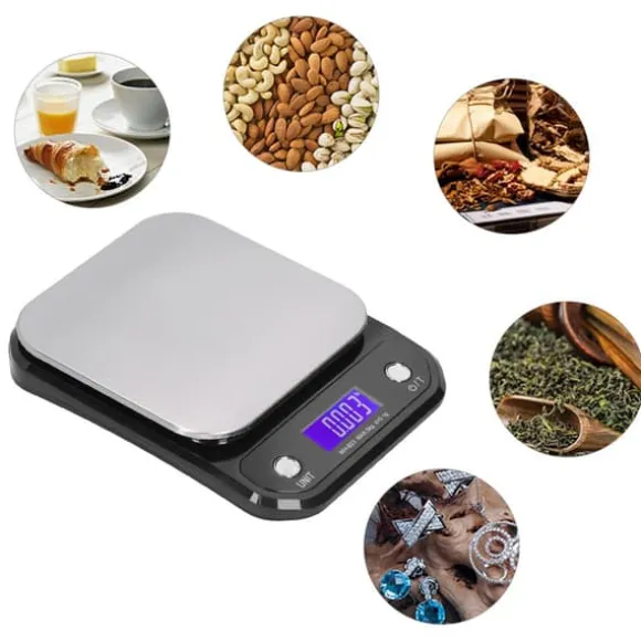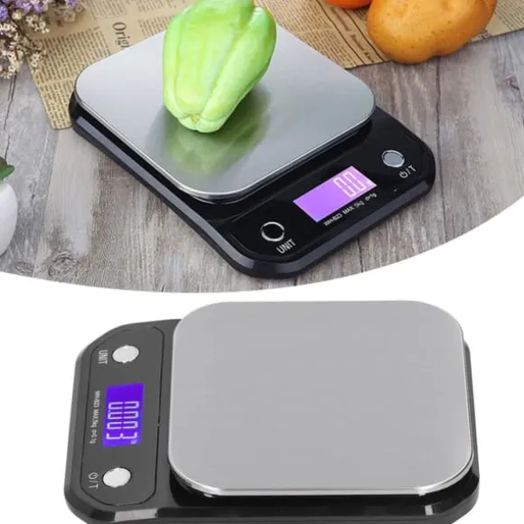 Välkommen till vår butik! Denna högkvalitativa köksvåg är tillverkad av slitstarkt rostfritt stål med en metallborstad yta, vilket ger både styrka och ett elegant metalliskt utseende. Den har en 360-graders LCD-skärm med full betraktningsvinkel och en vacker lila LED-bakgrundsbelysning, vilket säkerställer tydlig läsbarhet även i svagt ljus. Mångsidig och användarvänlig, stöder den tre mätenheter – g, lb och oz – för smidig växling och barriärfri vägning. Basen är utrustad med halkfria dynor i alla fyra hörn för att bibehålla stabilitet och säkerställa noggranna avläsningar. Drivs av ett smart chip, levererar den exakta och stabila mätningar, och dess smidiga, kompakta design gör den enkel att förvara och bära. Vågen drivs med 3 AAA-batterier (ingår ej) eller en extern 3-9V strömförsörjning. Produktens mått är cirka 16 x 21 x 3 cm (6,3 x 8,3 x 1,2 tum), med en vågyta på cirka 15,3 cm (6 tum), och den väger cirka 530 g (18,7 oz). Paketet innehåller 1 elektronisk våg (batteri ingår ej) och 1 engelskspråkig bruksanvisning. Nöjdhet: Våra kunder är vår högsta prioritet. Om du upptäcker några produktproblem efter att du mottagit varorna, såsom skador eller felaktig mängd varor, vänligen kontakta säljaren omedelbart. Vi gör vårt bästa för att ge dig tillfredsställande kundservice.