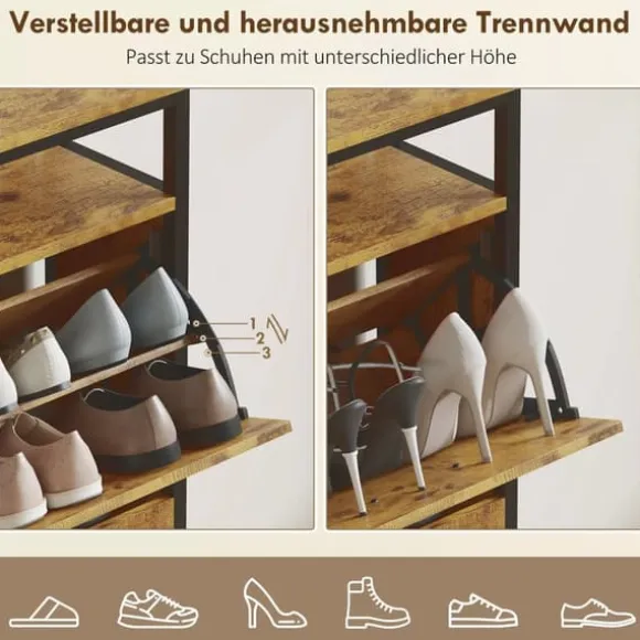 - ✔ Fyra fällbara lådor i skoskåpet ger plats för 12-20 par skor, perfekt för familjehem