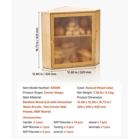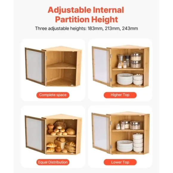 Denna brödlåda har en unik hörndesign som passar perfekt i kökshörn och hjälper till att spara förvaringsutrymme. Den optimerar din kökslayout och säkerställer att varje centimeter av utrymmet används effektivt.