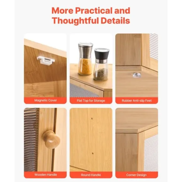 Tillverkad av naturlig bambu, är denna brödförvaringslåda både pålitlig och hållbar. Ventilationshål på baksidan främjar luftflödet och förlänger brödets färskhet, vilket håller maten fräsch längre.