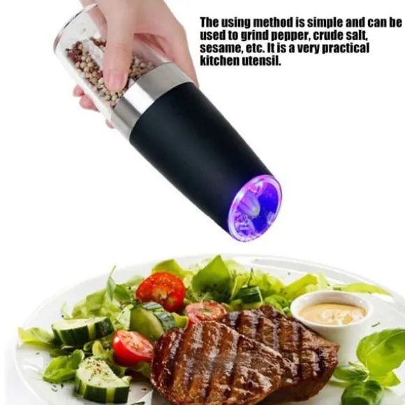 Välkommen till vår butik! Denna högkvalitativa pepparkvarn i rostfritt stål är hållbar, säker och giftfri, vilket garanterar pålitlig användning i ditt kök. Den har en gravitationsinduktionsdesign som endast aktiverar malningen när kvarnen vrids nedåt. Du kan enkelt justera malningstjockleken – rotera bara moturs för grova partiklar och medurs för fina partiklar. Med sitt enkla, eleganta utseende och avtagbara delar är rengöringen snabb och enkel. Perfekt för att mala olika fasta kryddor som peppar, grovt salt och sesam, detta praktiska köksredskap är både funktionellt och användarvänligt. Skick: 100 % helt ny Produkttyp: Pepparkvarn Material: Rostfritt stål Färg: Svart eller silver (valfritt) Ström: Kräver 6 x AAA-batterier (batterier ingår ej) Vikt: Cirka 391 g / 13,8 oz Storlek: Höjd: Cirka 20 cm / 7,9 tum; Diameter: Cirka 5,5 cm / 2,2 tum Paketet innehåller: 1 x Pepparkvarn (batterier ingår ej) Nöjdhet: Våra kunder är vår högsta prioritet. Om du upptäcker några produktproblem efter att du mottagit varorna, såsom skador eller felaktig mängd varor, vänligen kontakta säljaren omedelbart. Vi gör vårt bästa för att ge dig tillfredsställande kundservice.