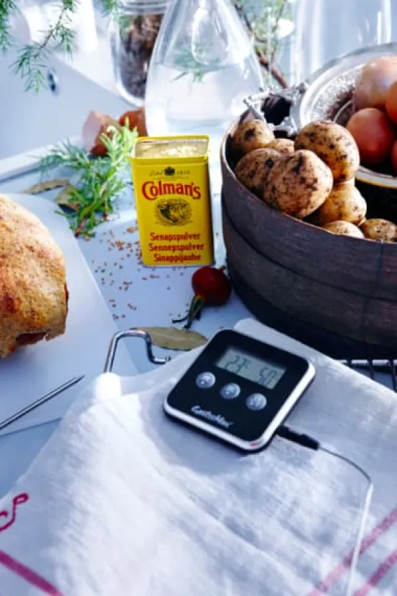Smidig digital ugns/hushållstermometer & timer. Räknar ner & upp 99 min, 59 sek.