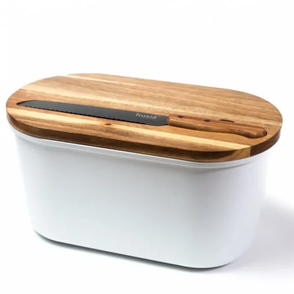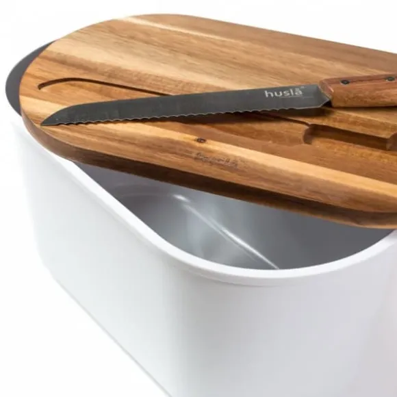 Innovativt brödset med skärbräda och kniv – elegans och funktionalitet i ditt kök Vi presenterar vårt innovativa set som låter dig förbereda bröd enkelt och snabbt. En brödlåda, skärbräda och kniv är allt du behöver för att när som helst njuta av färskt bröd. Kombinationen av ett akaciaelement av trä med en modern matt vit melaminkropp skapar en vacker och originell accent i varje kök. Produktegenskaper: 3-delat set: Innehåller en brödlåda, skärbräda och kniv, som möjliggör omfattande och bekväm förvaring och. beredning av bröd Kroppsmaterial: Haversäckens stomme är gjord av matt vit melamin, som är lätt att hålla ren och mycket slitstark akaciaträskiva tillverkad av massivt akaciaträ, som är hårt, hållbart och ser bra ut i köket: Brödkniv av hög kvalitet, tillverkad av rostfritt stål, med ett handtag av akaciaträ, som säkerställer ett bekvämt grepp och utmärkt skärprecision färg : Knivens handtag och locket på haversäcken är gjorda av bambuträ, vilket ger det hela ett elegant och naturligt utseende Tillverkarens logotyp: Synlig på locket, framhäver den höga kvaliteten produkt Mått: Längd: 37,5 cm Bredd: 21,5 cm Höjd: 19 cm av bröd och lätt att skära tack vare högkvalitativa tillbehör: Användningen av naturliga material garanterar hållbarhet och motståndskraft mot dagligt bruk. Omfattande lösning: Allt du behöver för förvaring och förbereda bröd, i ett set Investera i ett innovativt set som inte bara kommer att vara funktionellt, utan också blir en elegant dekoration av ditt kök!