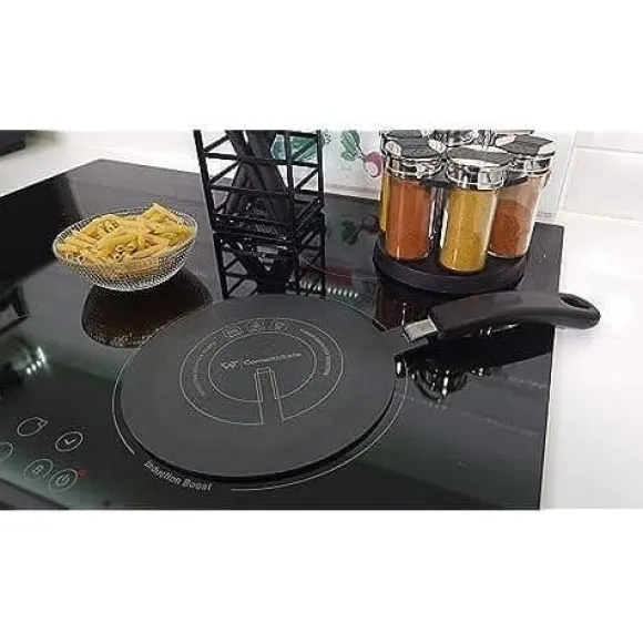 Denna induktionsadapter gör det möjligt att använda icke-kompatibla köksredskap på en induktionsplatta. Praktisk och ekonomisk, den undviker inköp av nya tillbehör. Mångsidig, den fungerar som värmeöverföring för italienska kaffebryggare och kastruller i aluminium, glas, gjutjärn, etc.