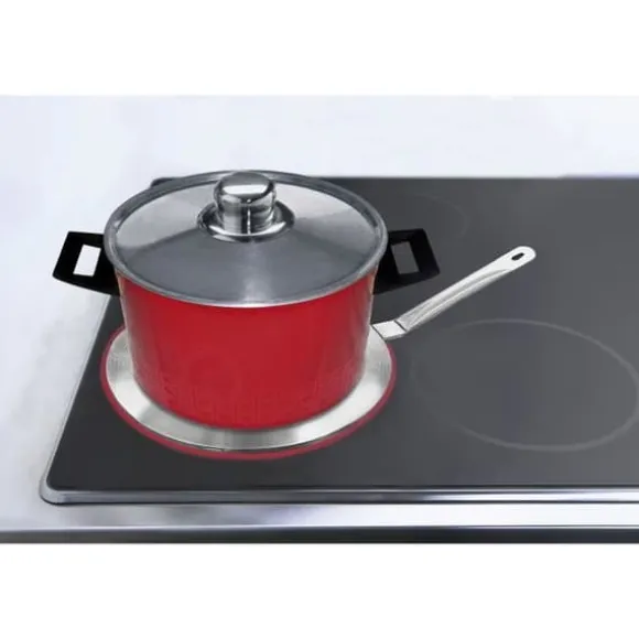 Denna adapterplatta på 23 cm i rostfritt stål och aluminium gör det möjligt att använda dina gamla köksredskap på en induktionsspis. Dess Cool-Touch-handtag förblir kallt för att undvika brännskador. Perfekt för kastruller som inte är kompatibla, den överför värmen snabbt och effektivt.