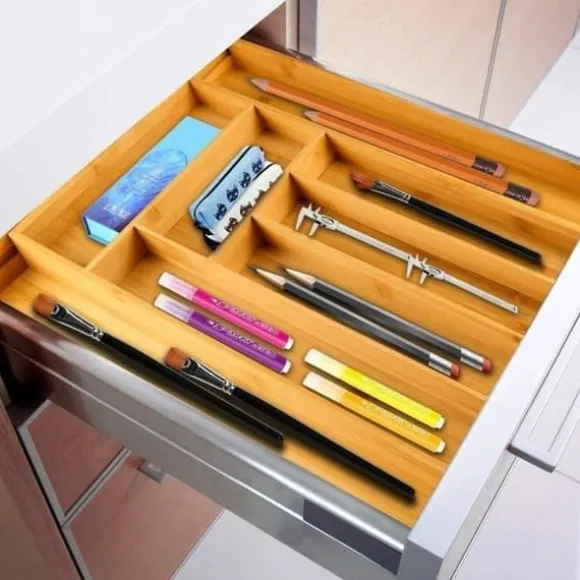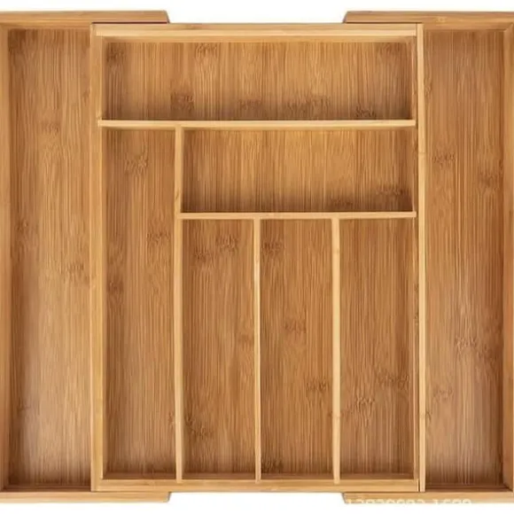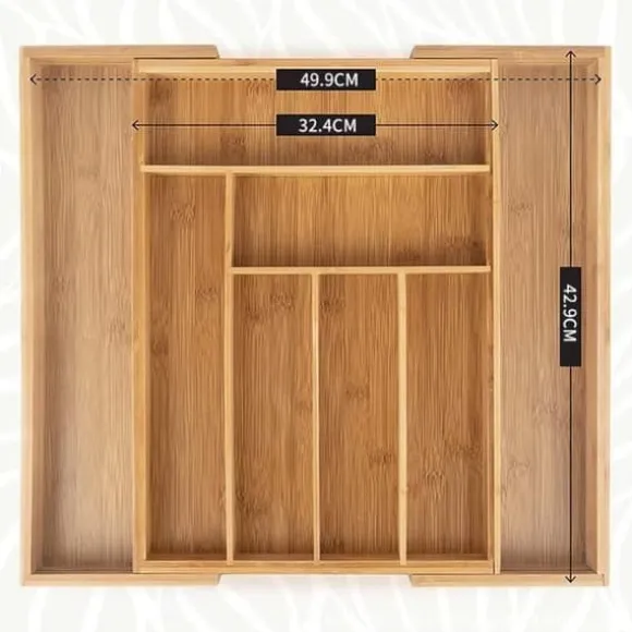 Besticklådan är gjord av slitstarkt naturligt trä som är slipat för hållbarhet. Träbestickbrickan är justerbar i storlek, 6-8 galler, infällbart område: 32,4-49,9*42,9*5cm. Perfekt för förvaring av knivar, skedar, gafflar