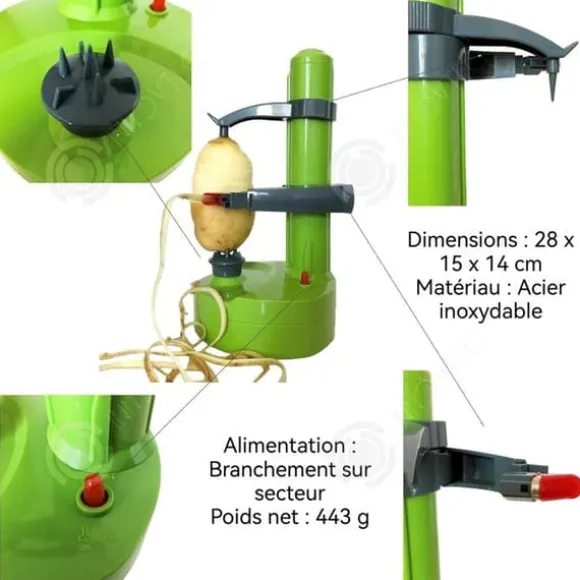 Användning: Potatis, äpplen, päron (om toppen och botten mäter mindre än 2-3 cm, är skalningstiden för lång). För potatis eller frukter med grov yta, använd spetsen under maskinen för att ta bort den grova ytan innan skalning.