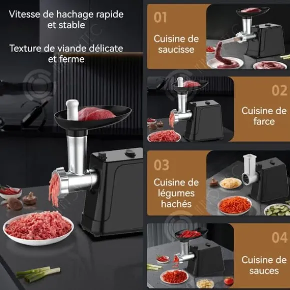 3. Intelligent överhettningsskydd: Denna köttkvarn har en inbyggd smart chip som automatiskt stänger av apparaten när temperaturen når en viss nivå, vilket förlänger livslängden på enheten och säkerställer säker användning.