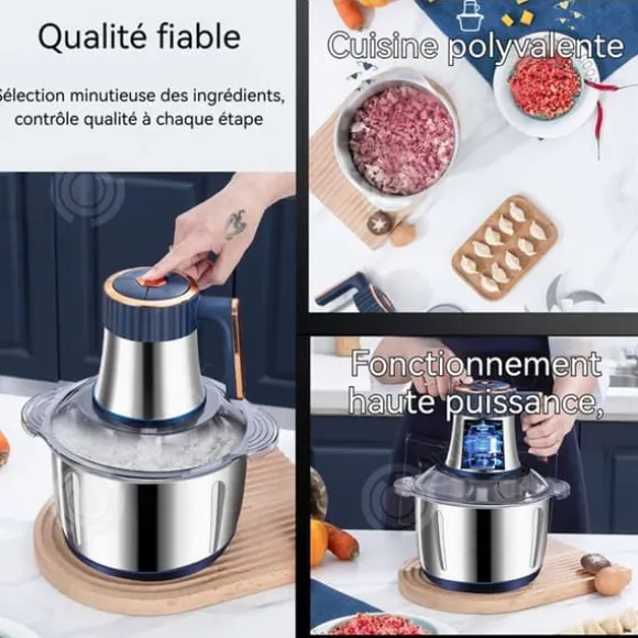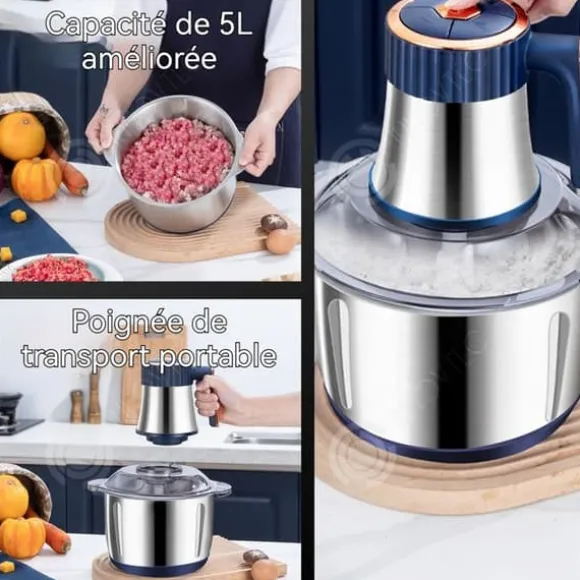 1. Stor kapacitet och effektiv bearbetning: Köttkvarnen har en 5L rostfri stålbehållare som möter behoven för gruppmåltider och möjliggör bearbetning av en stor mängd ingredienser på en gång, vilket sparar tid och ansträngning.