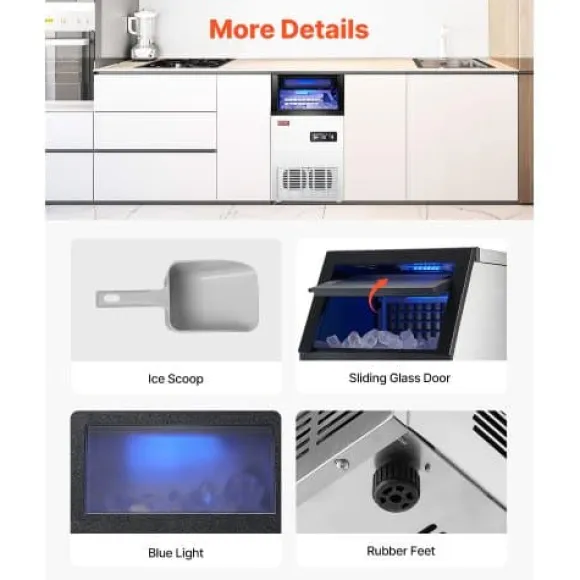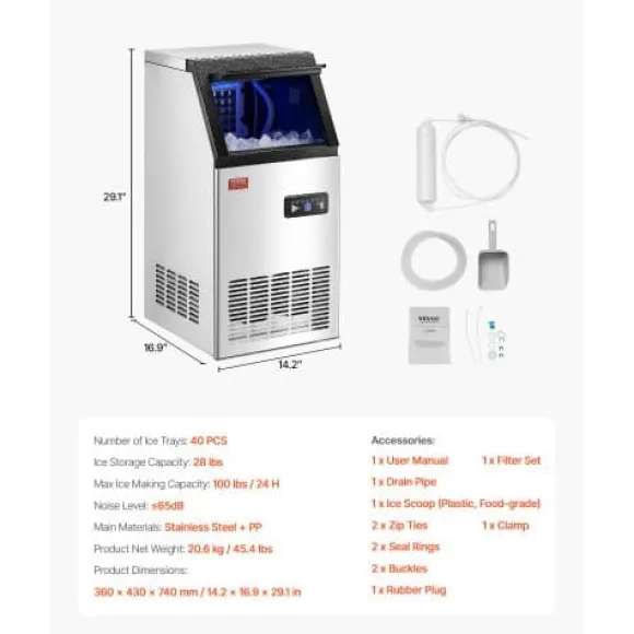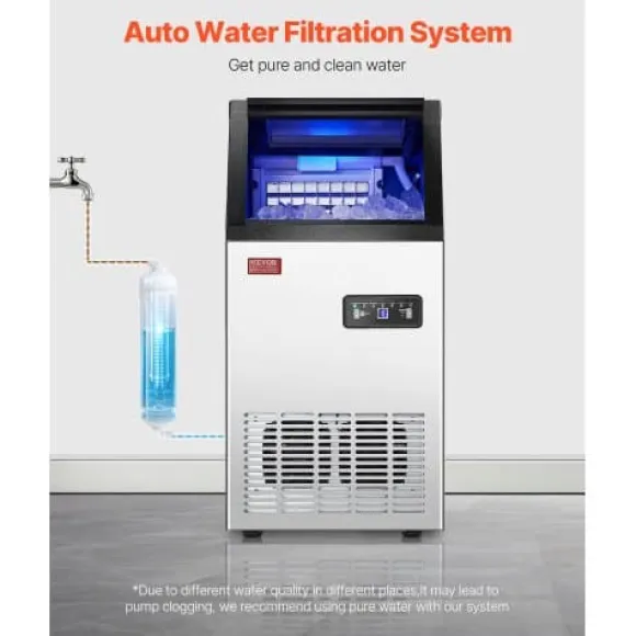 Denna kommersiella ismaskin är idealisk för barer, restauranger, kontor eller hemmabruk och levererar effektiv och tyst isproduktion med stor lagringskapacitet. Med självrengöringsfunktion, vattenfilter och smart LED-kontrollpanel säkerställs ren is och enkel användning. Den kompakta, isolerade designen håller isen färsk i flera timmar även när den inte används.