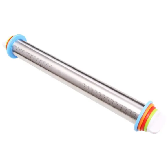 Justerbar tjocklek: Uppnå jämn degtjocklek varje gång med vår justerbara kavel. De medföljande ringarna gör det enkelt att justera höjden, vilket säkerställer att dina kakor, bakverk, pizzadeg och pajskal blir perfekt enhetliga. Denna funktion eliminerar gissningar och ger professionella resultat i din hembakning, vilket gör den till ett oumbärligt verktyg för både nybörjare och erfarna bagare. Den exakta kontrollen över degtjockleken säkerställer jämn tillagning och en överlägsen slutprodukt, vilket förbättrar din totala bakningsupplevelse och möjliggör kreativ kulinarisk utforskning med olika recept och tekniker. Denna justerbara funktion är perfekt för att skapa konsekventa resultat när du gör kakor, pizzadeg, pajskal och mer.