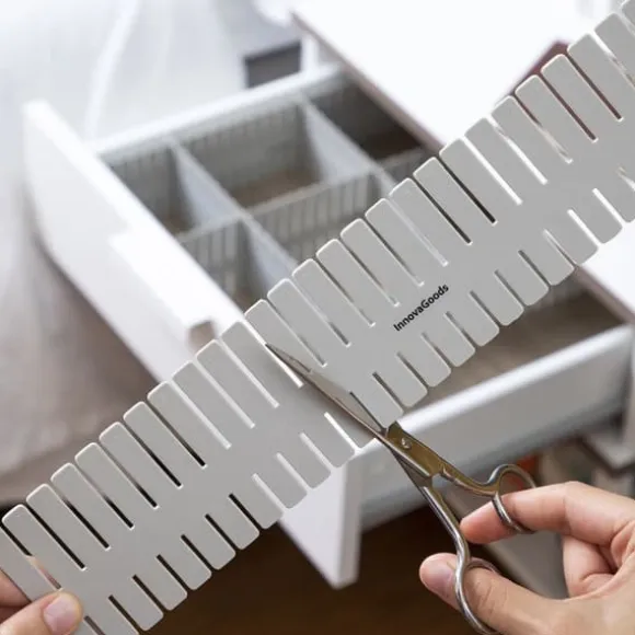 Condor InnovaGoods justerbara lådarrangör gör det möjligt för dig att organisera och utnyttja det tillgängliga utrymmet så effektivt som möjligt. Dess unika design, som gör att den kan klippas och delas, anpassar sig också perfekt till alla typer av lådor och andra utrymmen, inklusive bord, hyllor, skåp etc. Det är ett bekvämt och enkelt sätt att optimera hem- eller kontorsorganiseringen. Perfekt för sovrum, badrum, kök, kontor etc.