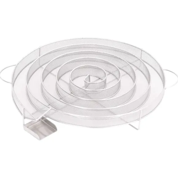 - Massiv gallerkonstruktion: Det snigelformade kompakta nätet gör att rökflisarna kan brinna jämnt och långsamt i upp till 20 timmar. Varaktigheten beror till stor del på rökträets natur. För bästa resultat rekommenderas att du använder chips med en kornstorlek på 0,5-2,0 mm.