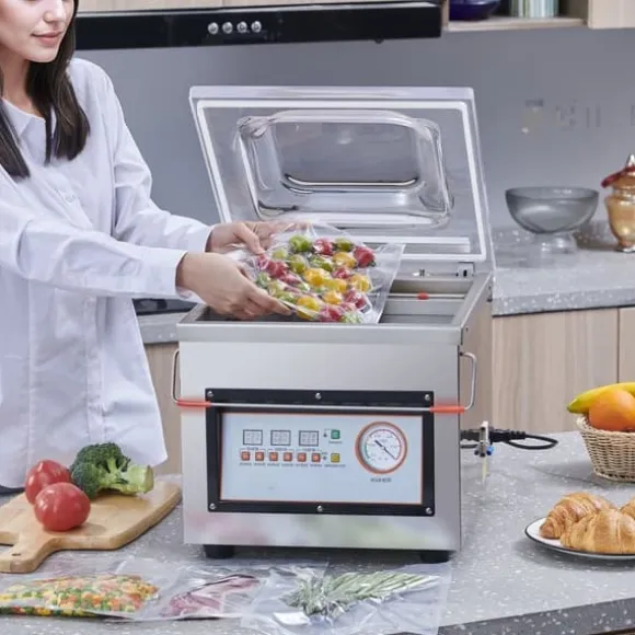 Från vätskor, fasta ämnen och pulver till pastasåser – vår vakuumförpackare i kammaren klarar av allt! Oavsett om det handlar om livsmedel, mediciner, vattenprodukter, råvaror eller elektroniska komponenter – försegla allt med självförtroende och håll det fräschare längre. Den erbjuder mångsidiga tillämpningar för att möta behoven vid olika tillfällen.